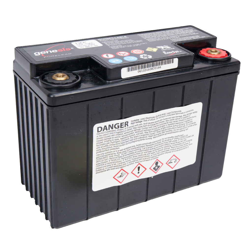 Enersys Genesis G13EP er et ekstremt robust batteri, for brug i de mest krævende installationer. Batteri kassen er fremstillet i flammehæmmende plast (UL94 V-0), og kan leveres i en "Metal Jacket" version som gør batteriet endnu mere robust overfor store temperatur udsving. Batteriet kan anvendes i temperatur området -40˚C til +80˚C, og kan ligge på lager i op til 2 år ved +25˚C. Batteriet kan anvendes i bl.a.: • UPS anlæg • Vindmøller • Alarm anlæg • Etc.